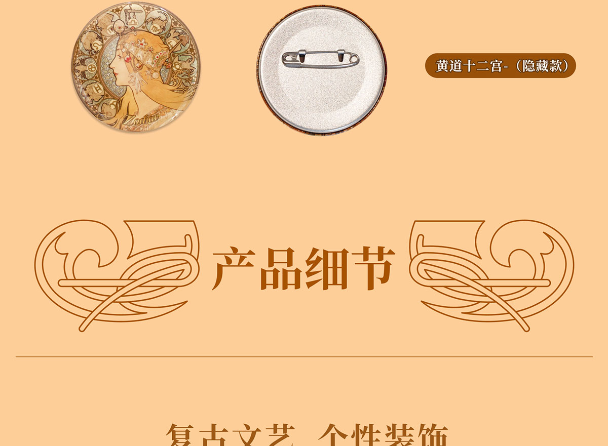 穆夏繁花·黄道星盘旋转徽章