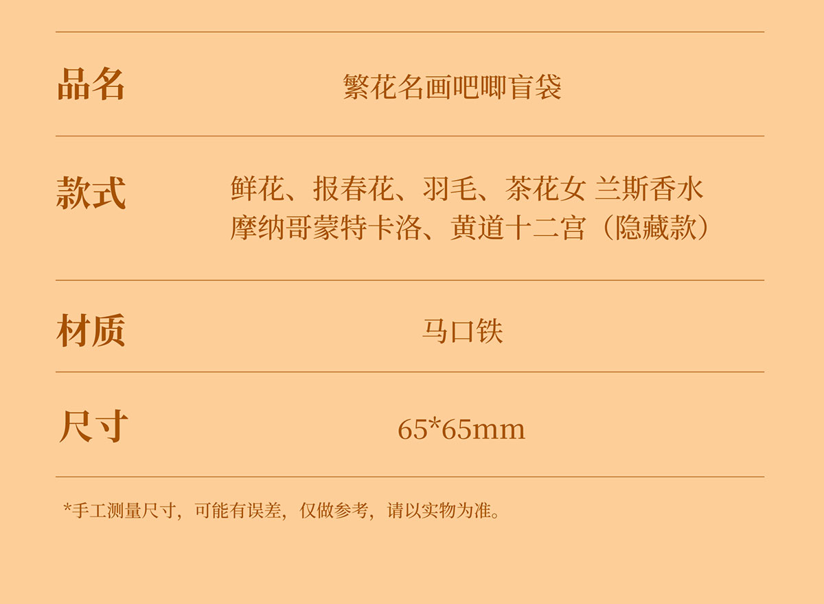 【盲袋】繁花名画吧唧 数量