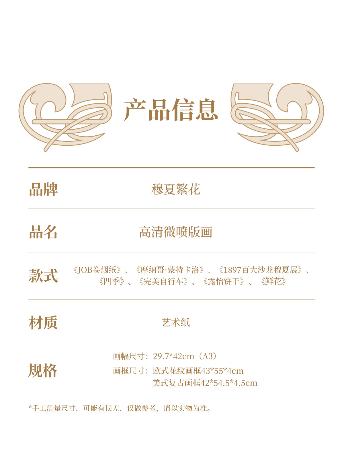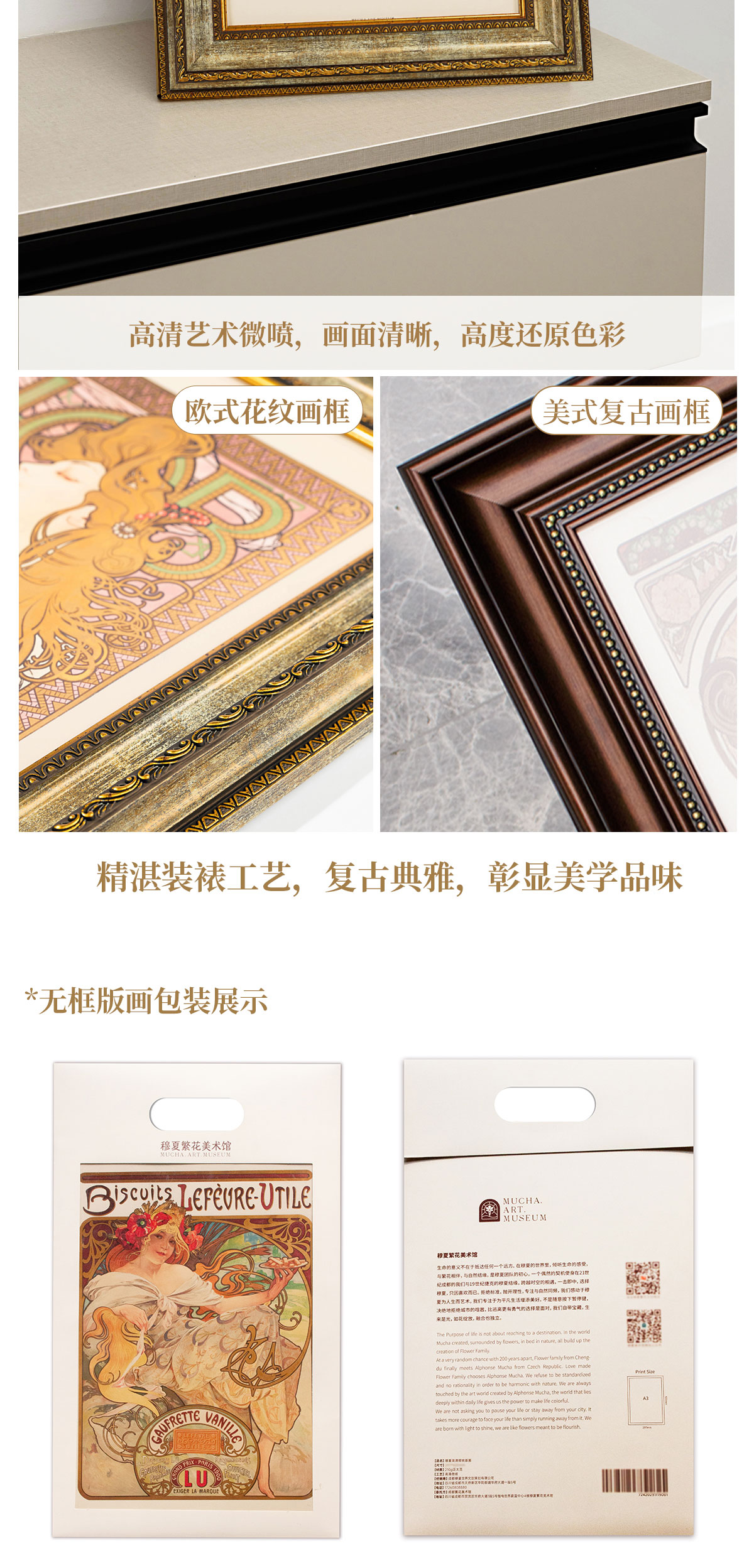欧式画框, 美式复古画框, 无画框(仅需画芯)