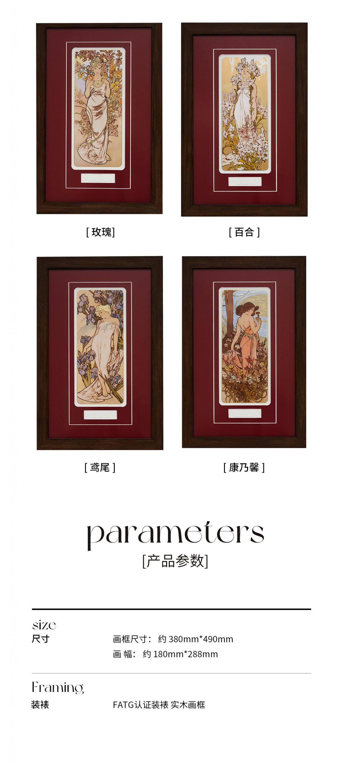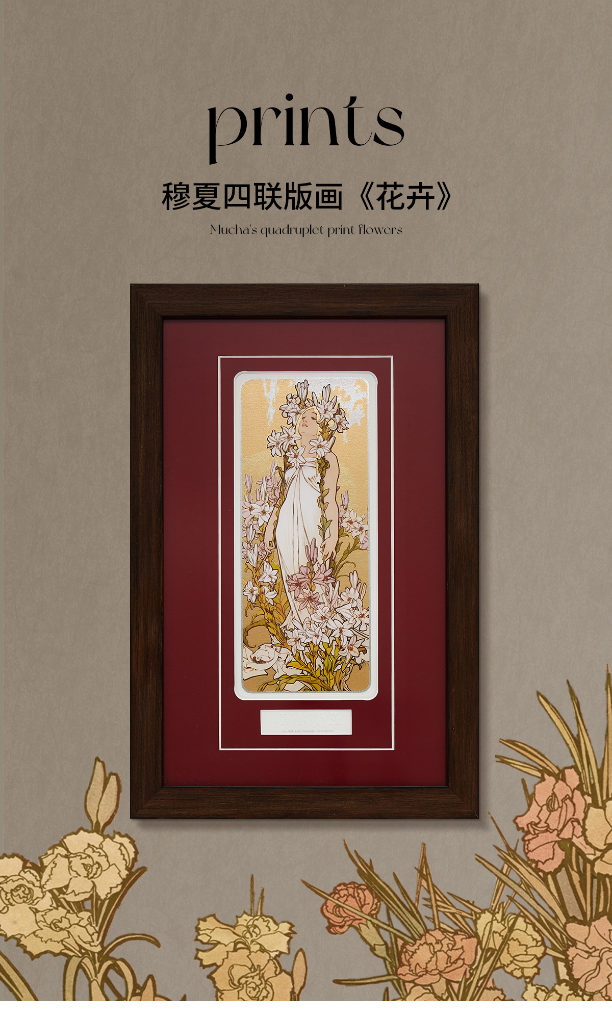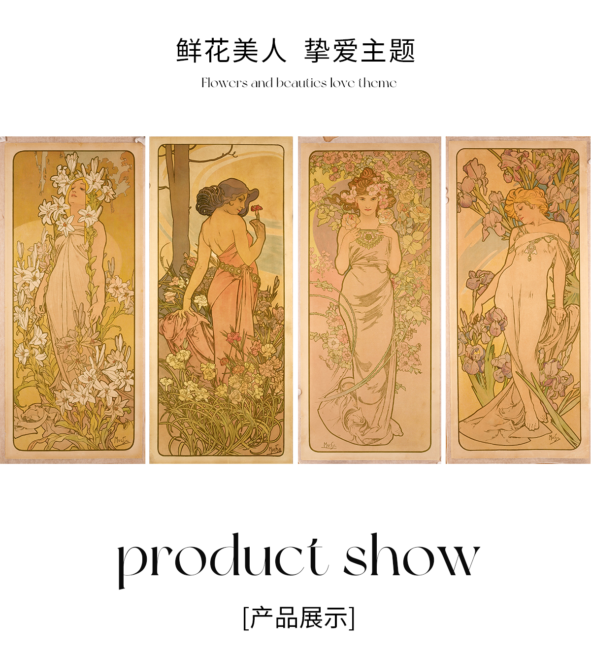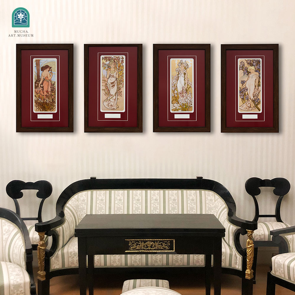 穆夏作品《花卉》The Flowers 四联版画